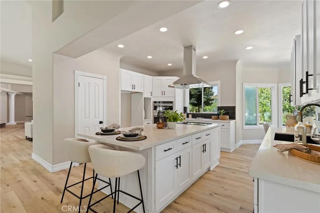 Welcome to 44240 La Cruz Drive, an elegant, move-in-ready retreat nestled in Temecula’s highly sought-after De Luz community. Set on nearly five acres of rolling hills with panoramic views, this executive home offers the perfect blend of privacy, style, and modern comfort. Enjoy single-story style living with a main-floor primary suite and two additional en-suite guest rooms, all beautifully updated with luxury vinyl plank flooring, fresh two-tone paint, and designer finishes throughout. The show-stopping kitchen features quartz counters, sleek euro cabinetry, GE Profile appliances, and an expansive island that opens to the bright, spacious family room. Step outside to your resort-style pool and spa, ideally positioned to capture scenic hillside views and sunset skies — perfect for entertaining or relaxing at the end of the day. The grounds include approximately 300 Hass avocado trees plus citrus, olive, fig, and apple, offering both charm and potential agricultural income. Additional upgrades include new pool plaster and decking, updated landscaping with artificial turf and drip irrigation, and a freshly sealed driveway. Plenty of room down below for an ADU, additional garage or a horse or 2. With low taxes, minimal HOA, and just minutes from Rancho California Road, this De Luz property delivers incredible value for its quality, acreage, and setting. Experience the tranquility of country living with the convenience of being just a short drive from Temecula’s shops, wineries, and schools — all at a new, competitive price.