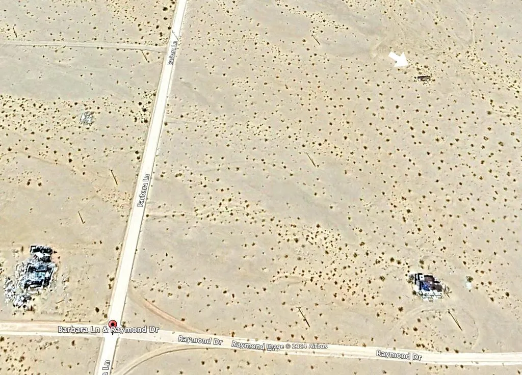 OFF BARBARA LANE, WONDER VALLEY:only $8,000.00.This unique 1-acre parcel features a fallen down to the ground old cabin or trailer. The electric pole is core of land. Appears to have old survey markers. No road access but it is nestled next to a 5-acre government parcel, it offers easy access across land. Surrounded by majestic scenery, this property is perfect for horse lovers and off-road enthusiasts. Don’t miss your chance to own a slice of paradise! Owner will carry 1st trust deed of $6,400.00 with 20% down payment of $1,600.00 @ 7% interest amortized over 5 years payable $126.73 monthly plus $15.00 loan service fee. APN#0627-041-39-0000.DIRECTIONS: Go east on Amboy Road to left on Barbara Lane. go to Raymond Drive then about 600 fr up the lane look east the land is off Barbara Lane about 336 feet across the government land look for sign and old cabin pile on the ground.