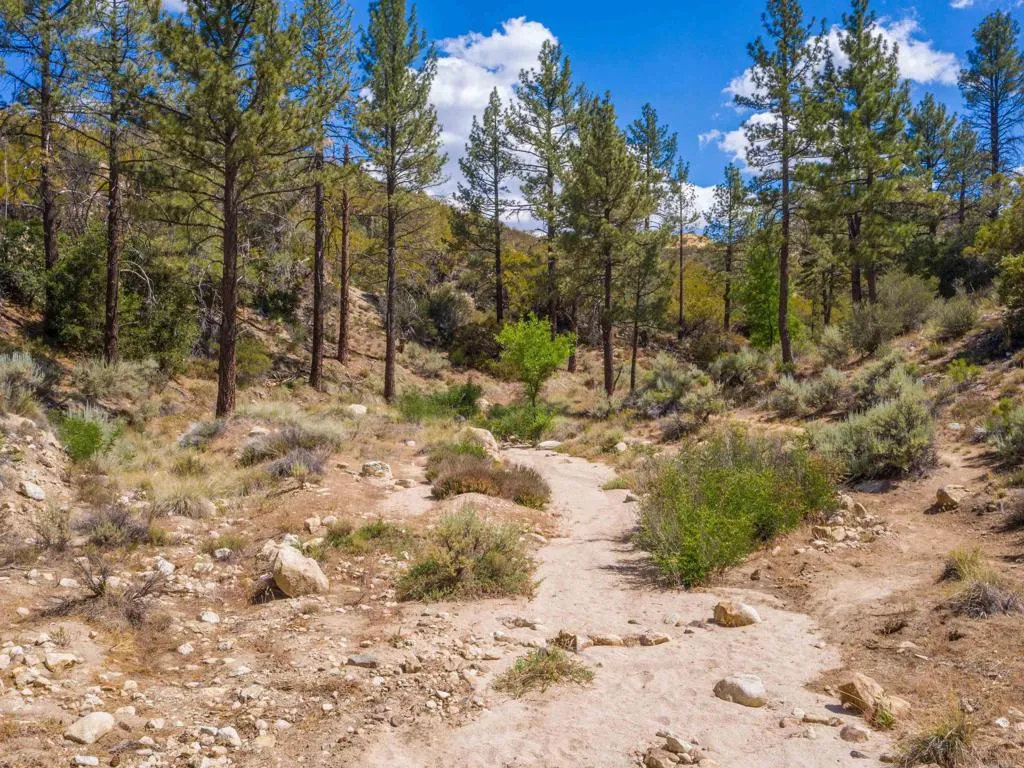 Majestic Home Site situated above 20+/- acres of gorgeous varied terrain, this exquisite property offers unmatched beauty and is ready for your Custom Dream House! Located at the end of a quiet cul-de-sac in the lovely and upscale community of Garner Valley, this offering is conveniently located between Lake Hemet and Palm Desert – minutes from Idyllwild, Anza, Mountain Center, and major metropolitan areas at either end of the Palms to Pines Hwy. Upon entering the property one is met by seasonal Martinez Creek which gently meanders through a rich and diverse forest, running the full length of the property into the surrounding mountains. A short trip along the recently re-graded driveway will carry you above the tree line to a prominent and expansive home site overlooking all the wonders of this picturesque valley. Words cannot describe the inspiration one feels envisioning a grand home perched atop this spectacular location! Following a lovingly carved walking path from the prepared building site leads one back down the creek towards a lush semi-riparian area fed by a year-round spring. As the stream bed opens into the lower forest, one is met by a charming micro-cottage privately tucked away – perfect for enjoying weekends while your home is being built! An abundance of natural resources including an artesian spring, seasonal Martinez Creek and extensive trails on the property connecting to the contiguous San Bernardino National Forest offer year-round enjoyment for a variety of outdoor activities including hiking, rock-climbing, horseback riding, hunting, exploring and observing the dark and clear nighttime sky. The property features a wide variety of mature pine species such as Jeffrey, Ponderosa and Pinyon, as well as Manzanita, Oak, Mountain Mahogany, Artemisia, Red Shank, and a wide ranging animal habitat from songbirds to deer, foxes, bobcats and more! An outdoor enthusiast’s paradise, this property presents the opportunity to develop a dream mountain ranch home and enjoy a natural lifestyle while comfortably experiencing four distinct seasons. Septic Installed, underground Power and Water at the property entry, and Home Plans available. The stunning beauty of this home site surrounded by natural beauty has to be seen to be fully appreciated!