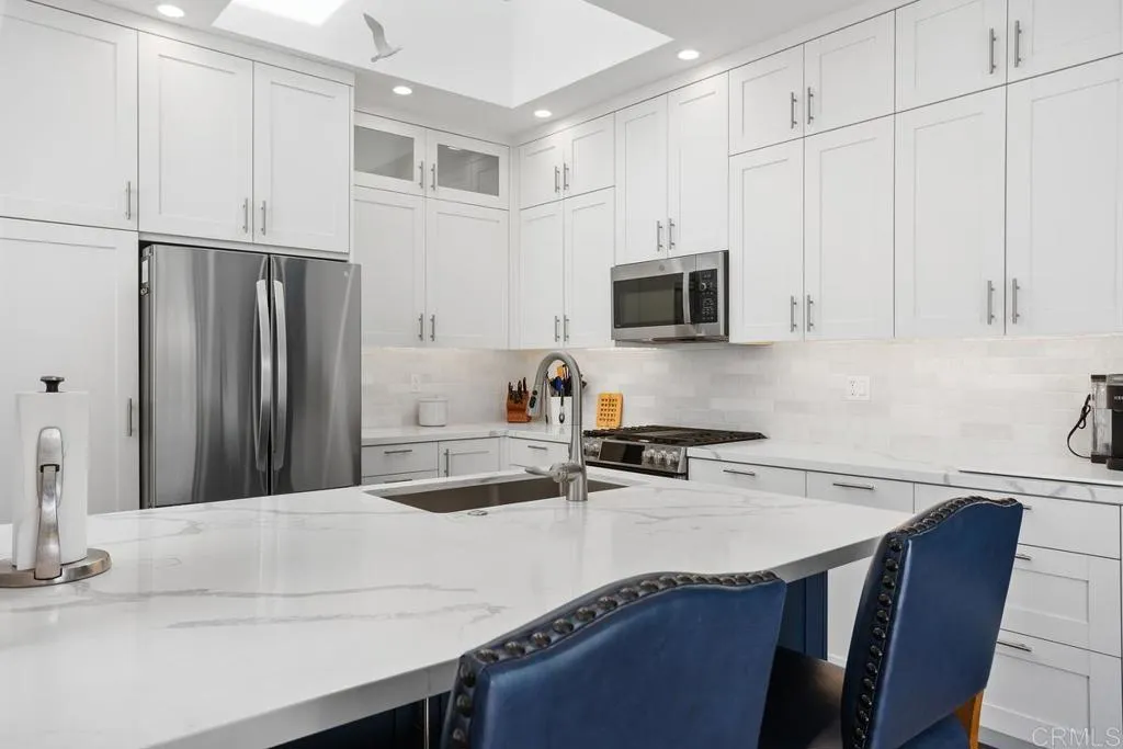 High end upgrades highlight this stunning two bedroom home that includes an additional room for office/den or guest bedroom. The kitchen is truly to die for, the fantastic bright and open design features quartz counters, tiled backsplash with under cabinet lighting, beautiful white cabinets from floor to ceiling offer space for everything, gorgeous blue base at the center island w/ breakfast bar. Stainless steel appliances (2021), amazing automated skylight (2021) that opens with a push of the button allowing wonderful breezes in, recessed lighting. Luxury vinyl plank flooring throughout this home compliments any decor with its neutral warm color. Sliding door off dining area leads out to the relaxing and private back yard. The primary bedroom has vaulted ceilings, en suite bathroom featuring double sinks, new tile shower, walk-in closet and a private enclosed patio with new decking for your own zen retreat. Renewal by Anderson windows (2020) with transferable warranty, new HVAC (2023), Full Home Filtration System (2021), tankless water heater (2022), owned Solar Optimum Solar (2019). This wonderful patio home is walking distance to the members only, Shadowridge Country Club featuring dining, drinks, social activities and of course, golf.