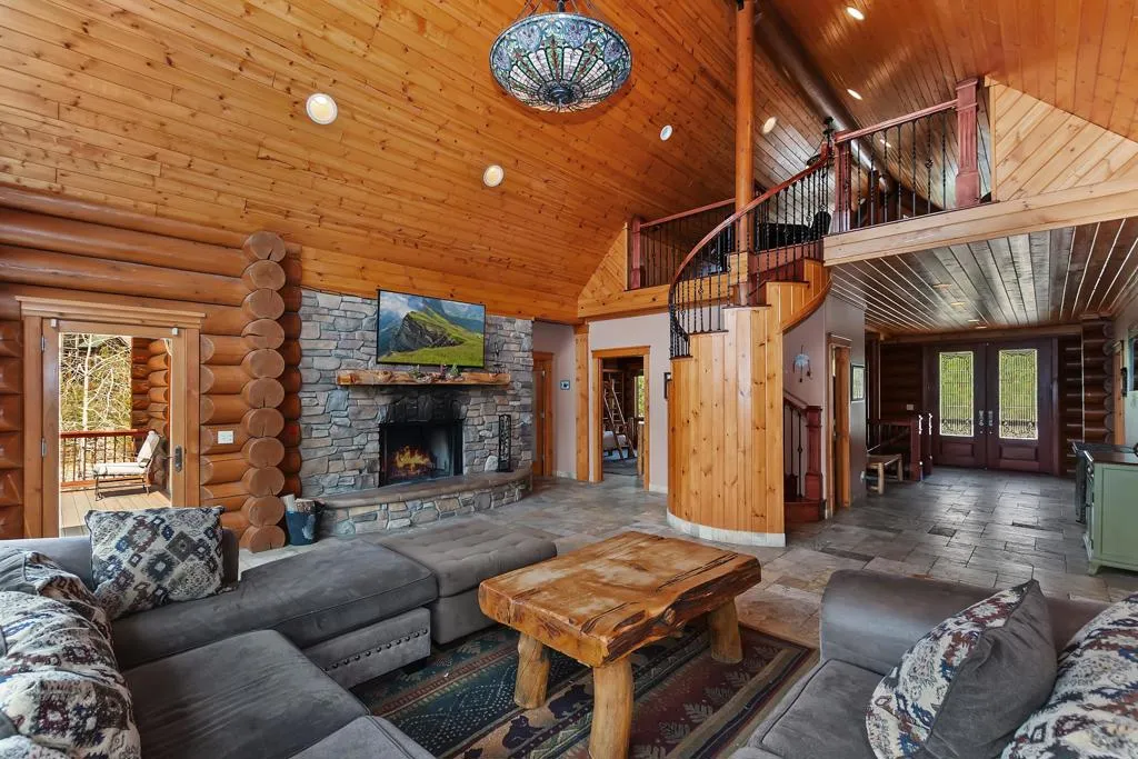 Luxurious Log Home nestled in the prominent Castle Glen Estates; this exquisite three-story log home offers the perfect blend of rustic charm and modern luxury. Featuring 5 spacious bedrooms, 3.5 bathrooms, a den, separate office, and loft, the residence is designed for comfort and versatility. The oversized gourmet kitchen is a chef’s dream, equipped with JennAir stainless steel appliances and ample counter space. Stone flooring with radiant heating ensures warmth and elegance throughout. The master suite serves as a tranquil retreat, boasting an expansive shower and a generous walk-in closet. Enjoy panoramic mountain views from multi-level decks, quintessential for entertaining or peaceful relaxation. An attached three-car garage provides ample storage for vehicles and outdoor gear. Located just minutes from Big Bear Lake, ski resorts, and local dining, this home offers both seclusion and convenience. Experience mountain living at its finest in this exceptional Castle Glen property.__________________________