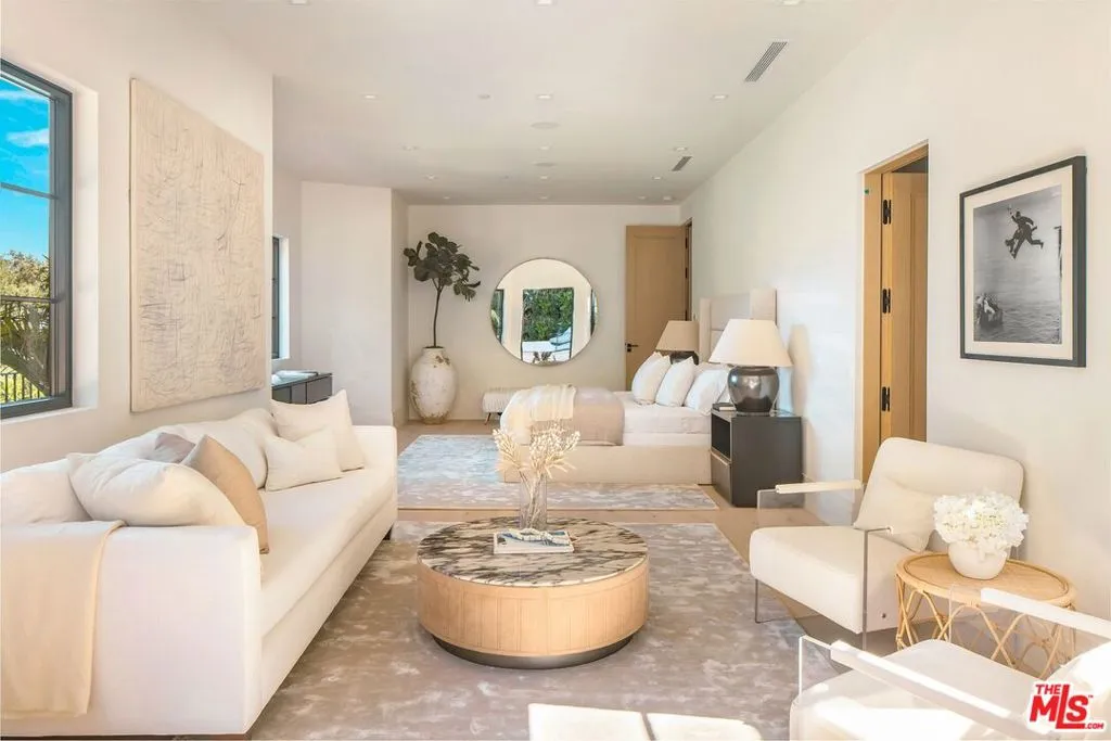 Hidden on nearly an acre, this ultra-private Lower Mandeville Canyon estate, located at the end of a cul-de-sac, offers a rare retreat of scale, timeless design, and exceptional value, surrounded by homes valued at up to forty million dollars. Located at the end of a small, quiet cul-de-sac just two streets up from Sunset Boulevard, it provides the ultimate in privacy and security. This custom 6-bedroom, 9-bathroom residence unfolds with high ceilings, city vista views, and a transitional organic modern design that nods to the elegance of Paul Revere Williams. Interior highlights include wide-plank white oak floors, a dual-island chef’s kitchen with European oak cabinetry and marble countertops, and thoughtfully designed living spaces that offer effortless indoor-outdoor flow to the expansive, manicured grounds. Two primary suites, each situated on its own level, provide the ultimate in privacy and comfort, featuring luxurious spa-like bathrooms, floating vanities, soaking tubs, and designer dressing rooms. French doors throughout the home open to limestone terraces, a sprawling flat lawn, a saltwater pool, and a Hollywood Regency-style cabana designed for the pinnacle of California living and entertaining. Additional highlights include a 13-car motor court, a rose garden, a private courtyard, and thoughtfully layered landscaping that creates the feel of a true private compound. The combination of architectural integrity, estate-scale land, and an exceptional location, close to the finest dining, shopping, schools, and more, offers unmatched value at this price point. This is a true legacy home with enduring appeal in one of Los Angeles’ most sought-after neighborhoods.