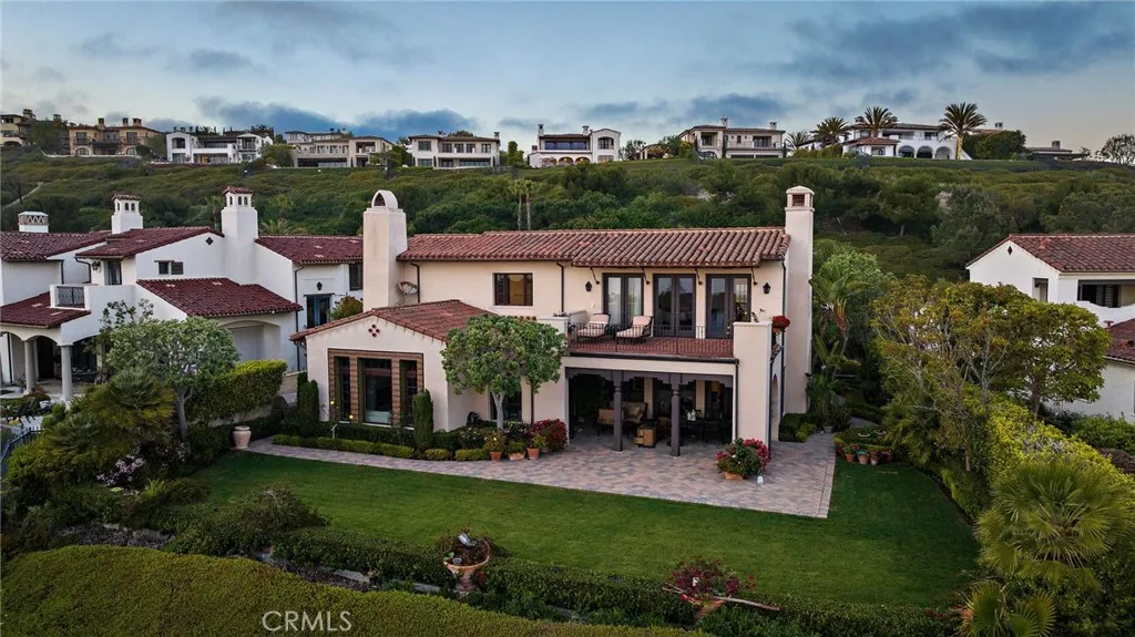 Perched above the Pacific in Newport Coast’s prestigious Crystal Cove, this Mediterranean-inspired estate offers sweeping views of Catalina Island, El Morro Cove, and Abalone Point. Set on an expansive 11,077 (+/-) sq ft lot, the home spans 5,082 (+/-) sq ft of refined living space designed to embrace coastal beauty at every turn. Beyond a private gated courtyard, the residence welcomes you with wood-beamed ceilings, distressed walnut floors, and European tile floors, blending timeless elegance with relaxed sophistication. The formal living room features a precast fireplace, custom crystal chandeliers, and opens to a heated, covered loggia—perfect for enjoying ocean sunsets year-round. The chef’s kitchen is fully equipped with top-tier appliances, granite countertops, two dishwashers, a prep island, and a separate catering kitchen. An open-concept layout connects seamlessly to the family room and breakfast nook, all framed by panoramic ocean views. The primary suite is a peaceful retreat with French doors opening to a stunning, private ocean view terrace and a spa-inspired bath featuring a jetted tub, large walk-in shower, and dual walk-in closets. The thoughtful floor plan includes a dual-desk upstairs office and four bedrooms, five bathrooms, inclusive of a separate guest casita with private entrance—ideal for visitors or multigenerational living. Enjoy a manicured lawn with plenty of room for relaxation and recreation, a 3-car garage with built-in storage, a built-in audio system, and ADT Security installed on all doors and windows. Living in Crystal Cove means more than enjoying an extraordinary home—it’s access to a world-class lifestyle. Residents enjoy a heightened level of privacy, prestige, and 24-hour guard-gated security along with exclusive amenities at The Canyon Club, including a resort-style pool, spa, fitness center, and sport courts. Private beach access, miles of scenic trails, and proximity to Laguna Beach, Newport Beach, and upscale shopping and dining at Fashion Island make this one of the most desirable communities on the California coast.