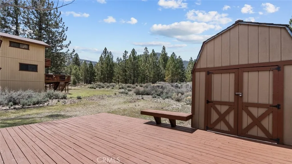 Head outside onto the deck to indulge in panoramic views of the landscape, creating an idyllic setting for relaxation and outdoor entertaining. Follow the deck to discover the convenient shed nestled in the serene backyard, adding functionality to the charming outdoor space.