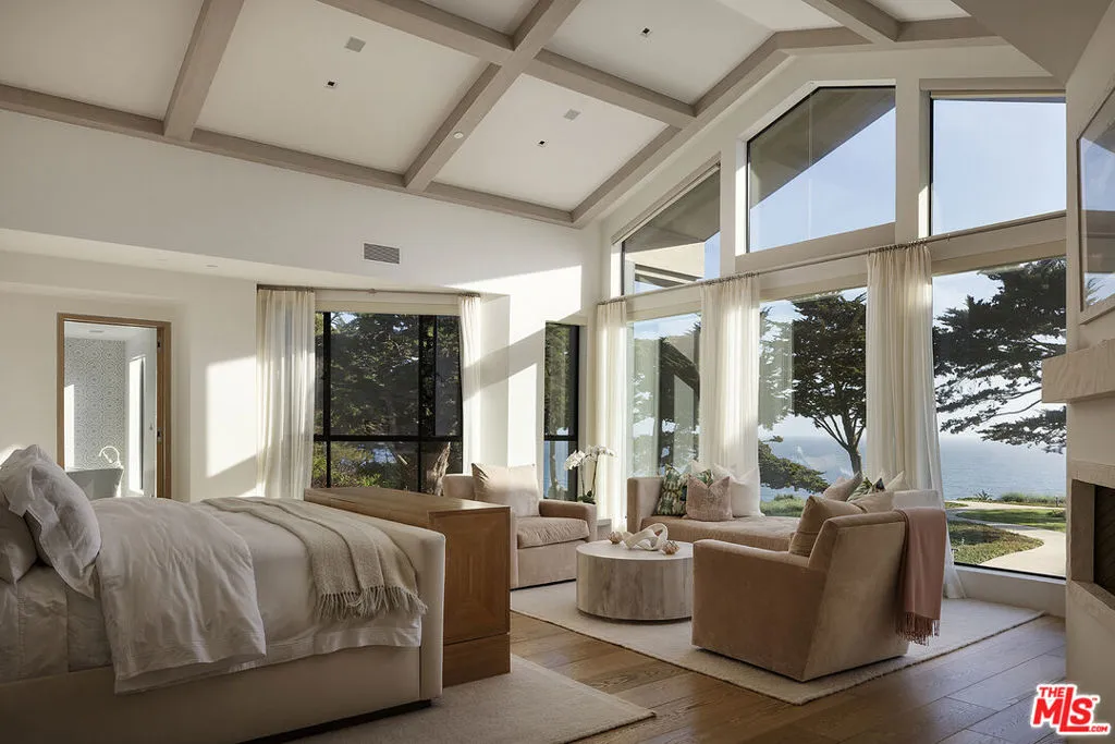 An exquisite four-acre bluff delivers a fully transformed, resort-inspired lifestyle positioned amidst boundless views of ocean and coast. Masterfully renovated with the finest materials and select finishes, this remarkable residence is a chic, sprawling haven for all ages, complete with three dedicated observation areas, park-like playground, and steps down to a private beach. Gated and concealed from the street, the private grounds include a large motor court with an abundance of parking, meandering pathways, and sprawling lawns. Double glass-paned steel front doors open to a gallery-style foyer with stone floors and paneled vaulted ceilings as architectural lines converge to frame a preview of what’s to come. The vast double-height living room showcases the magnificence of the Pacific through a series of towering, floor-to-ceiling windows aside a travertine fireplace and custom staircase that elegantly swirls to the second level. An adjacent formal dining room is complete with art wall and tray ceiling for added drama and dimension. The family room has pocket doors and a massive picture window to highlight the home’s natural setting. The chef’s kitchen is equipped with state-of-the-art Miele appliances, beautiful center prep island, farm sink, and ocean-facing breakfast ledge. Nearby, a wet bar seats four and includes a pass-through to the outdoor entertaining spaces. Powder rooms are bespoke and curated. Upstairs is a pajama room, the ocean a centerpiece. The sumptuous primary wing includes a wonderful parlor, coffered ceilings, fireplace, and serene spa-inspired bathroom with dual-sink stone vanity, oversized glass shower, soaking tub, and intricate mosaic wall. There is also a media/gaming room adjacent to the secondary bedrooms, a gym with steam room, a wine cellar, mud room, and large theatre with billiards and card area. Outside, enjoy a premium resort experience with numerous patios, pool, spa, and full-size basketball/tennis court. For the young at heart, a playground is equipped with a sandbox, swings, jungle gym, slide, and in-ground trampoline! There is even an outdoor kitchen equipped with a restaurant-grade pizza oven for serving a large number of guests. Enjoy magical sunsets from the lounging cabana or gather around the fire pit for evening conversations oceanside. Welcome to this idyllic slice of paradise, sited just moments to Santa Barbara’s historic downtown, numerous wineries and tasting rooms, country clubs, golf courses, the airport, and the boundless beauty of the California coast.