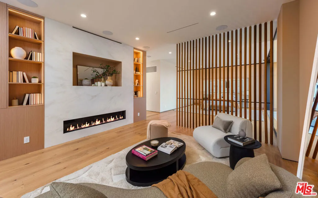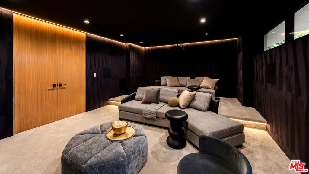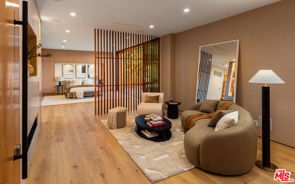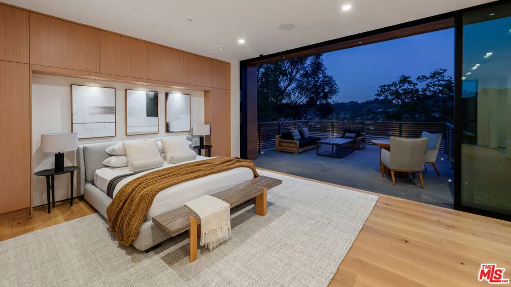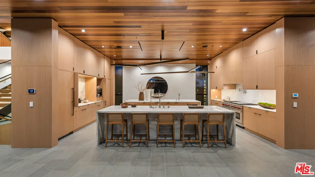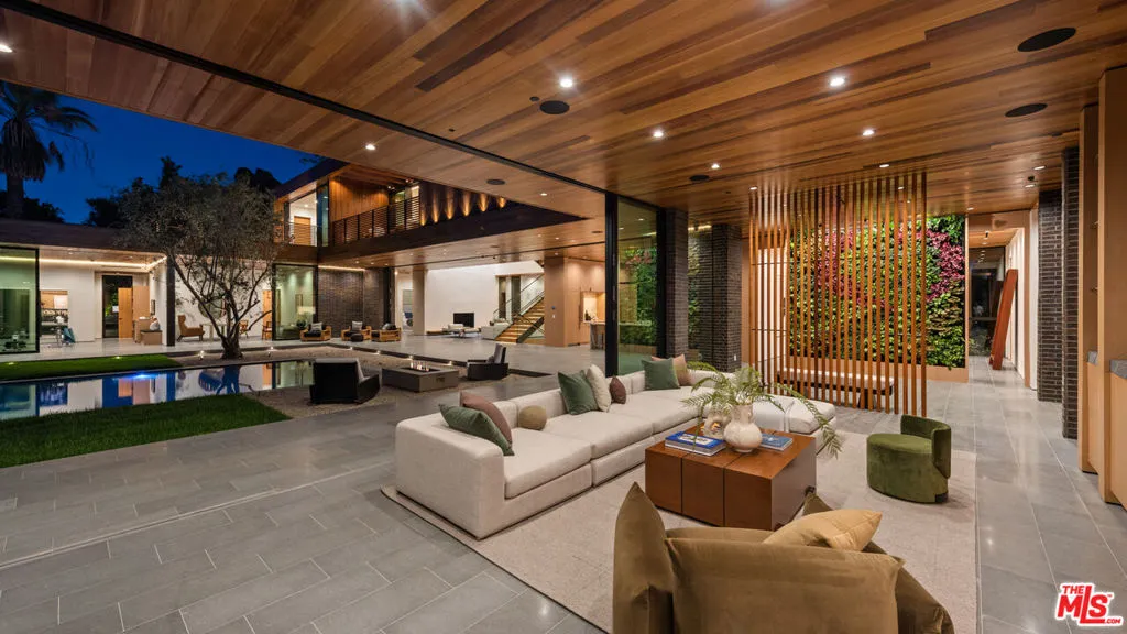 This stunning new architectural gem, designed by the acclaimed Noah Walker, sets a new standard for luxury living. Nestled behind the prestigious gates of Oak Pass Road in Beverly Hills, this ultra-private estate offers a rare combination of seclusion and grandeur. Spanning across an expansive floor plan, the home features 7 spacious bedrooms and 9 lavish bathrooms, perfect for both intimate living and large-scale entertaining. The journey begins through an impressive glass pivot door, greeted by a 10-foot indoor greenery wall, elegant brick-clad columns, and soaring hardwood ceilings. The state-of-the-art kitchen is a chef’s dream, with dual marble islands, oak cabinetry, top-of-the-line Wolf and Subzero appliances, and two Miele coffee makers. The kitchen seamlessly flows into the dramatic two-story living area, complete with a custom floating staircase that connects all levels of this architectural wonder. Designed to blend indoor and outdoor living, the home boasts 50-foot Fleetwood pocket doors that open to the meticulously landscaped grounds, featuring a zero-edge pool and spa, an outdoor kitchen, fire pit, olive trees, and multiple lounging areas all set against breathtaking panoramic views. First-class amenities include a private movie theater, fully equipped gym, Himalayan salt sauna, dual steam showers, a temperature-controlled wine display, three private balconies, and a Crestron smart home system. The motor-court, lined with mature oak trees, adds the finishing touch to this one-of-a-kind estate. This extraordinary residence offers an unmatched level of sophistication, set in one of the most exclusive locations in Beverly Hills. An unparalleled opportunity for those seeking ultimate luxury.