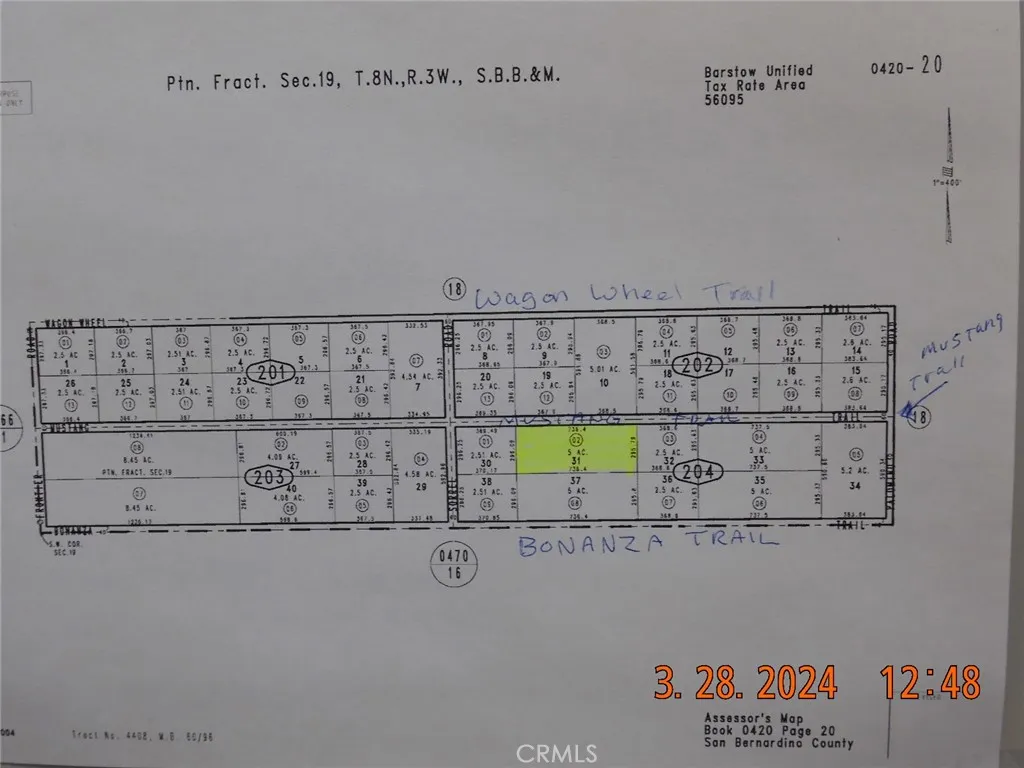 From Barstow or Helendale, take National Trails Hwy to Bonanza Rd. Go East on Bonanza to Frontier Rd. Go Left on Frontier, right on Mustang Trail, go 0.55 miles to the property which will be on your right. (Property after this one has stuff on it). Cross Street: Frontier Rd.